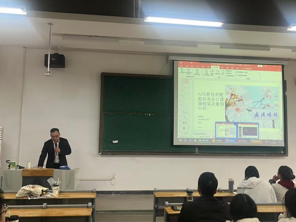 为深入探索人工智能时代财务会计的转型路径,提升学院师生的前沿学术视野与科研创新能力,会计学院于2026年3月4日成功举办了“AI与新技术赋能财务会计逻辑框架及案例分析”专题学术讲座。本次讲座特邀全国会计领军人才、上海国家会计学院赵团结教授担任主讲,学院全体教师及学生代表共75人参加了此次活动。