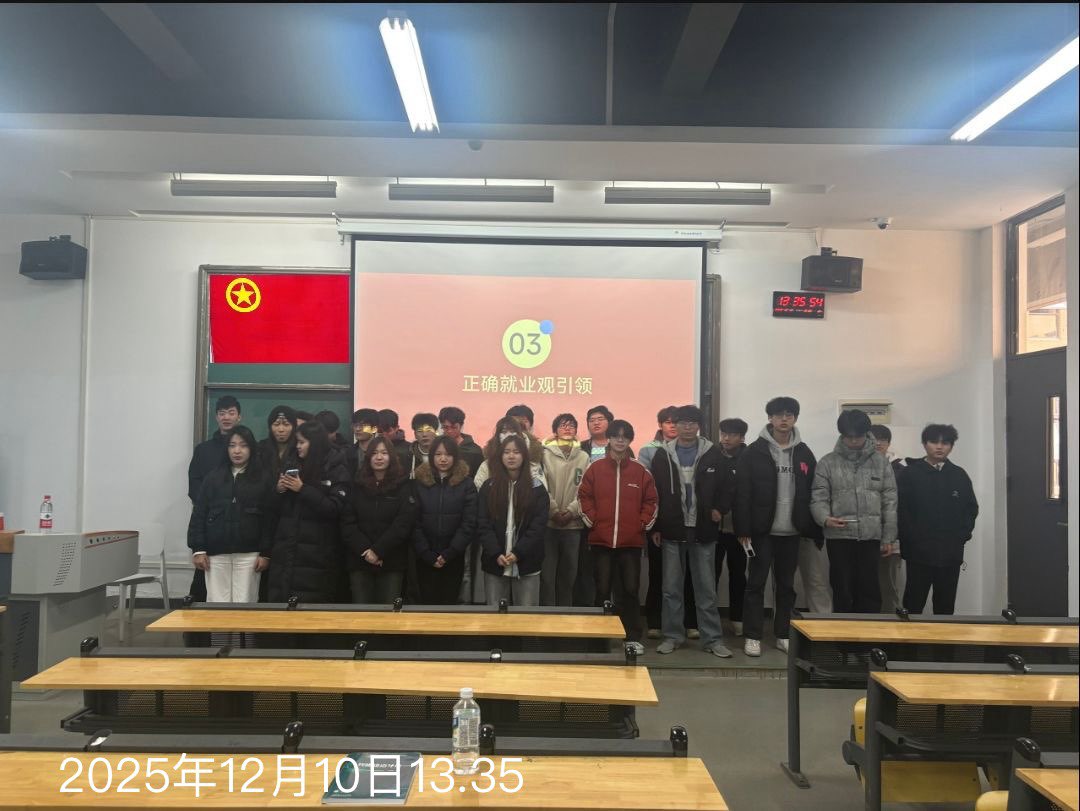 为深入学习贯彻习近平总书记重要回信与贺信精神,引导团员青年将个人职业理想融入国家发展大局,树立理性平实、担当有为的正确就业观,2025年12月10日,会计学院工管2401团支部于教一101教室开展“牢记领袖嘱托,筑稳就业之路——以青春之力赴时代之约”主题团日活动,支部30名成员全员参与,11名团员带头践行活动精神。